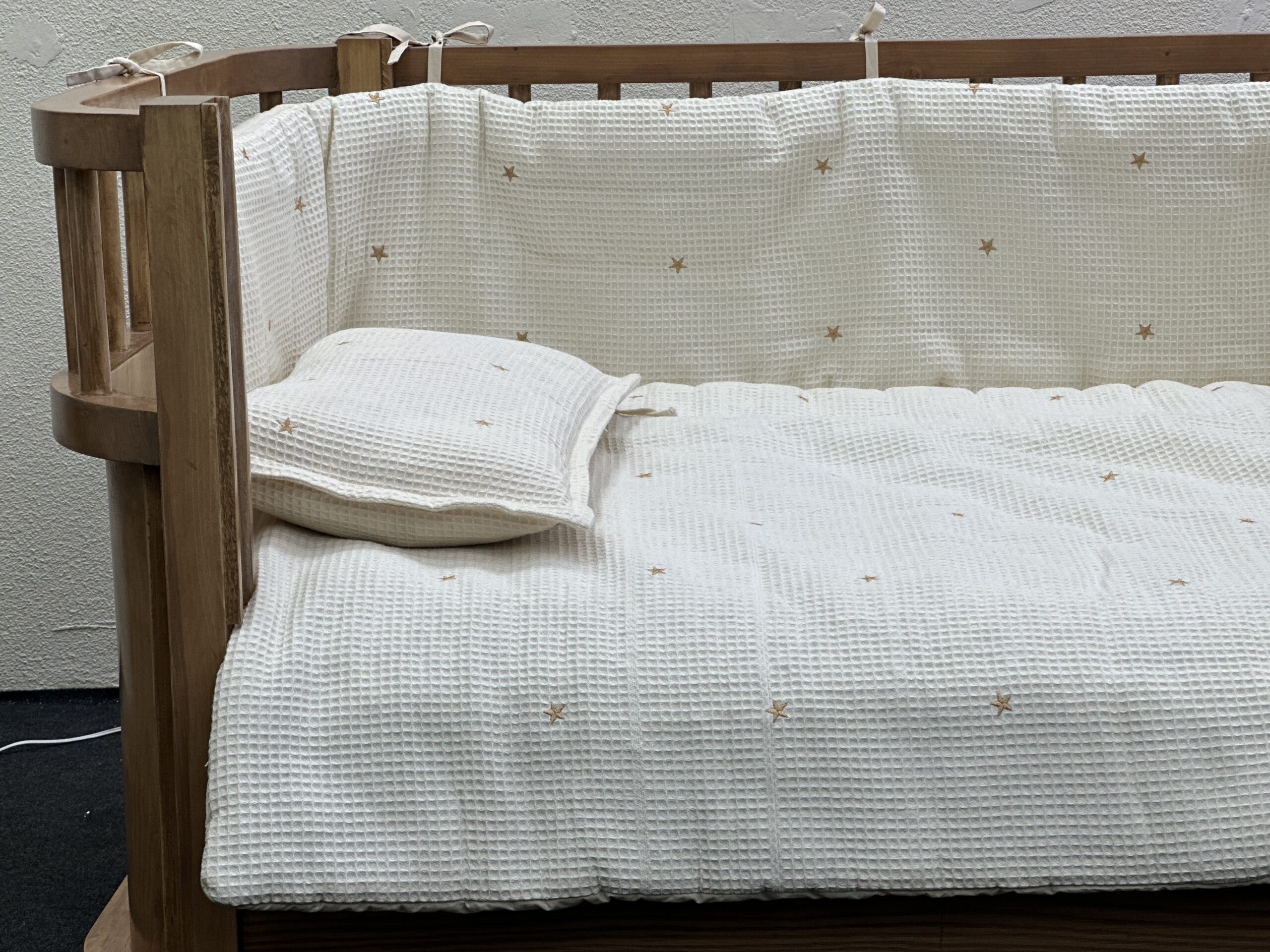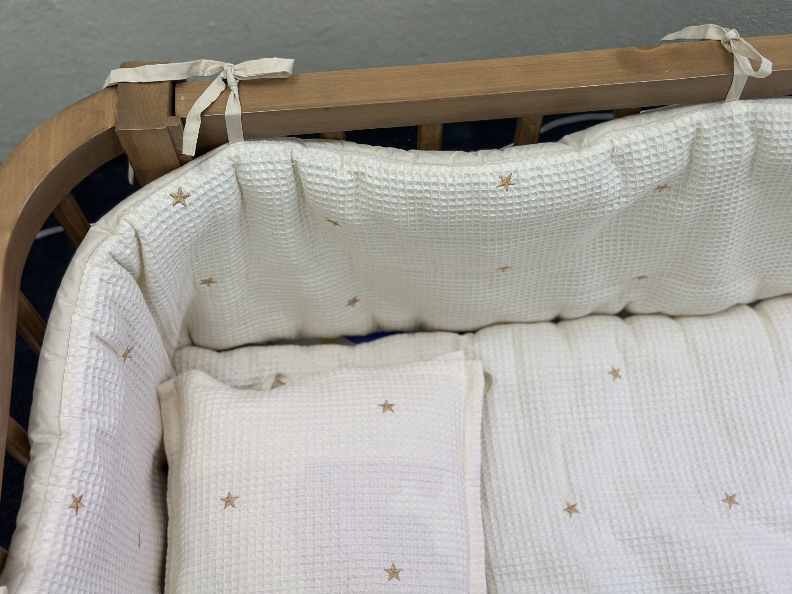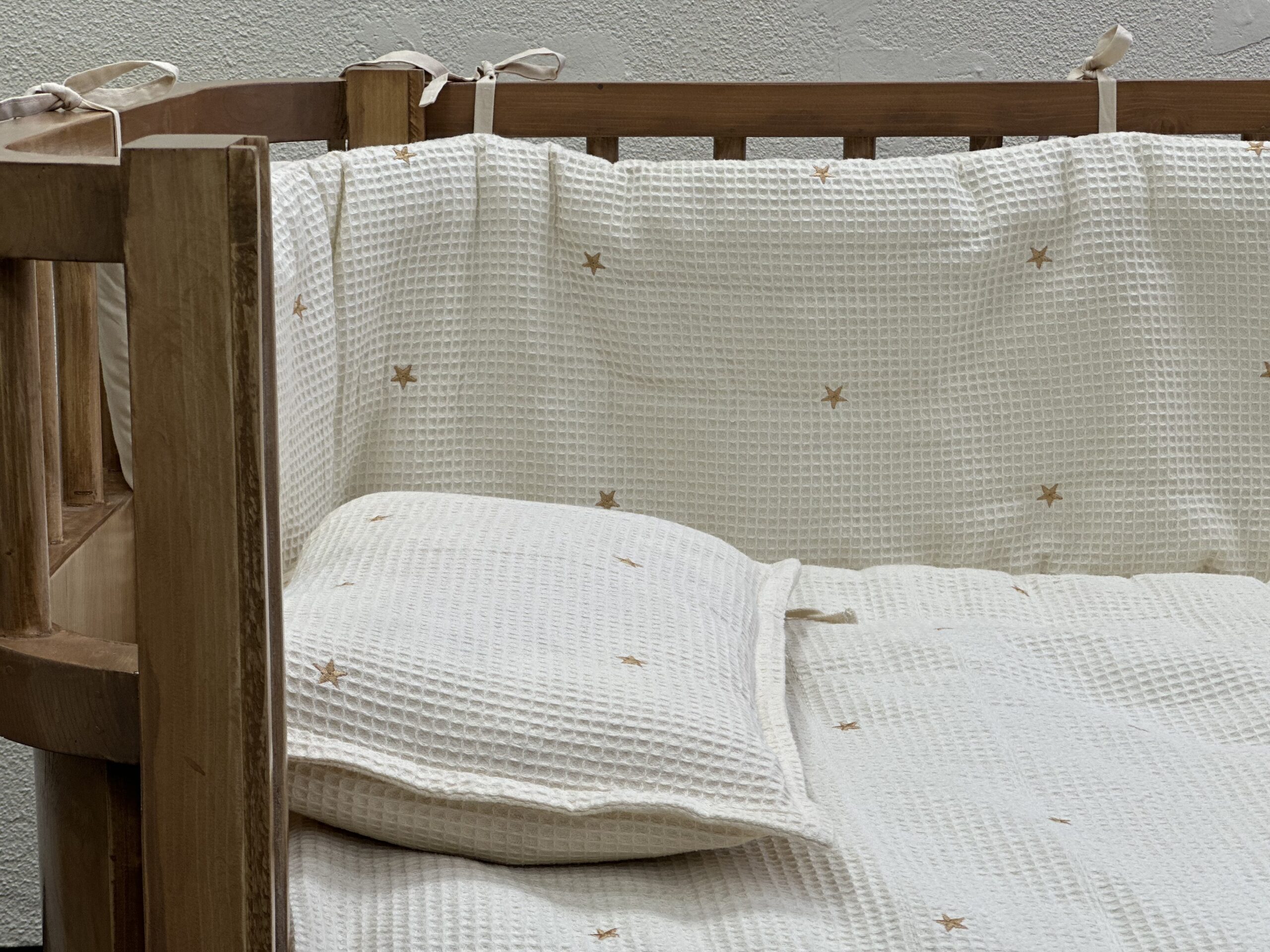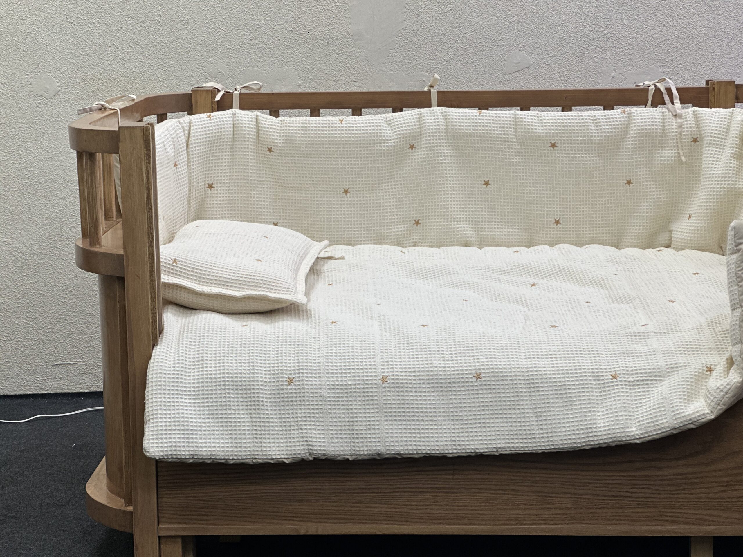 این روتختی نه تنها به زیبایی اتاق کودک میافزاید، بلکه راحتی و آرامش را برای نوزاد شما تضمین میکند. طراحی ساده و شیک، با تیکهدوزیهای دقیق، باعث میشود که محصول هم از لحاظ ظاهری و هم از نظر کیفیت یک انتخاب عالی باشد.